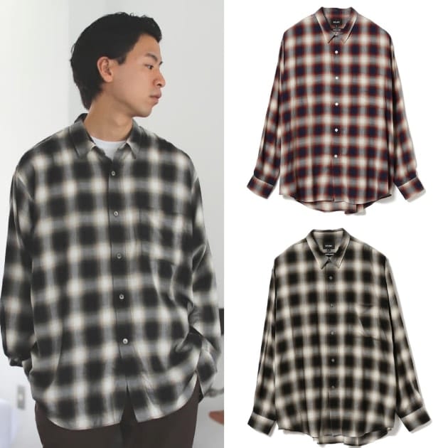 秋冬の装いに欠かせないオンブレチェックのシャツで、無地のアウターからチラッとチェックが見えるぐらいが丁度良い感じ。