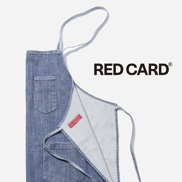 只今、先着順で<RED CARD>対象商品をお買い上げいただくとこちらのエプロンをプレゼント。