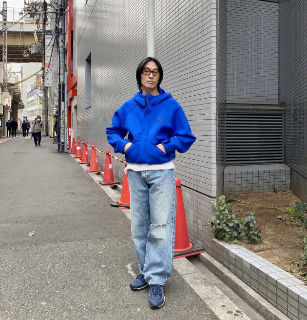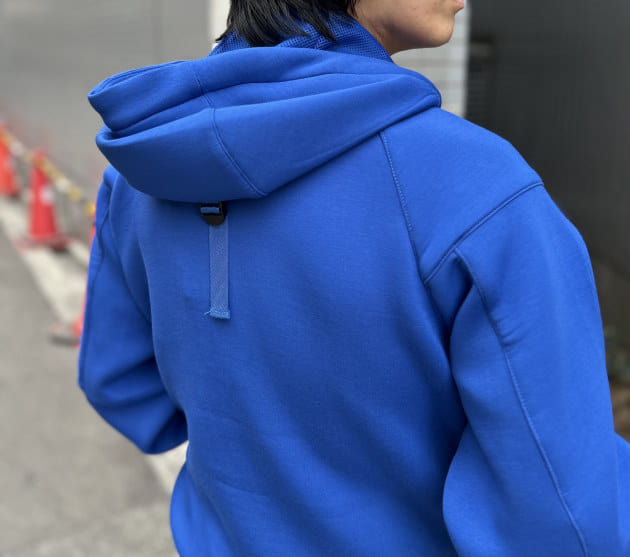 スウェットのような柔らかさがありつつ、ハリ感もあるので、着た時のシルエットがすごくきれい。いかにもアウトドア、という感じにならず、普段のスタイリングにすっと馴染んでくれます。