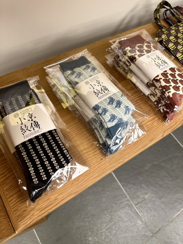 『ねこの目』、『山水てんぐ』、『かげうさぎ』の小紋柄を取り入れたハイゲージソックス。