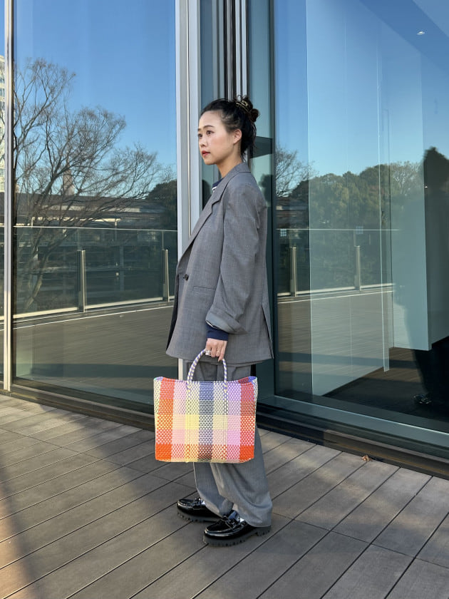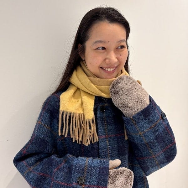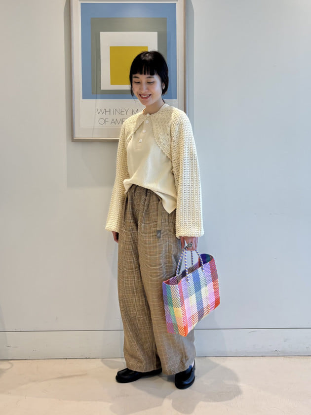 チェック柄が合うように、ベージュ系でまとめたところもポイントです。