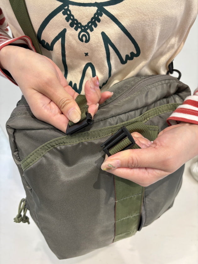 ショルダーのベルトもしっかりタフな素材なので