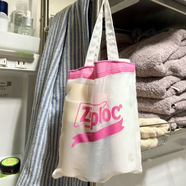 手提げタイプの方は毎日使っているスキンケア、ヘアケアアイテムを収納しています。