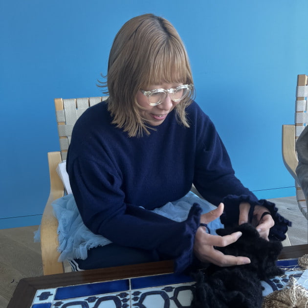 さらに素材にも拘っており、ボディのニットには、肌触りが良く、吸湿性もある、通年着用可能なモヘヤ混の糸を使用しました。