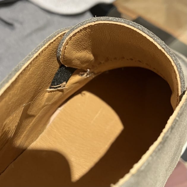 スニーカーのタン(ベロ)の裏側には両サイドにゴムが縫い付けられているのでシューレースが無くてもしっかりと足をホールドしてくれるように作られています。