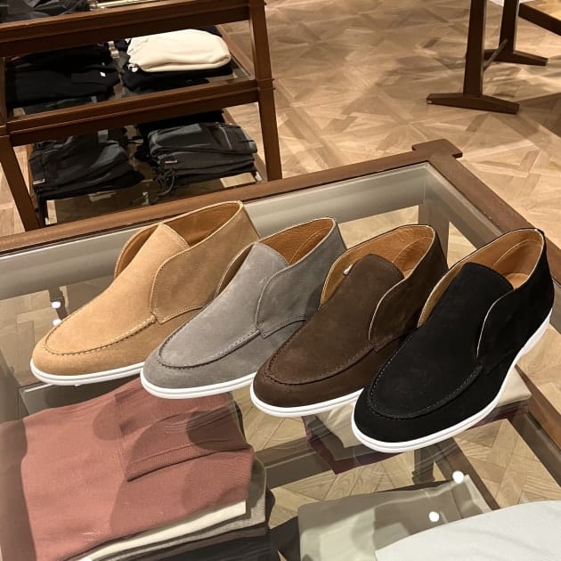 シューズはこの春夏シーズンに大変人気のあった<Brilla per il gusto>オリジナルスニーカーのハイカットモデルです。このタイプは前回のイタリアの展示会やミラノの高級ブティックのウインドーなどかなり色々なブランドから提案されていたスニーカーです。