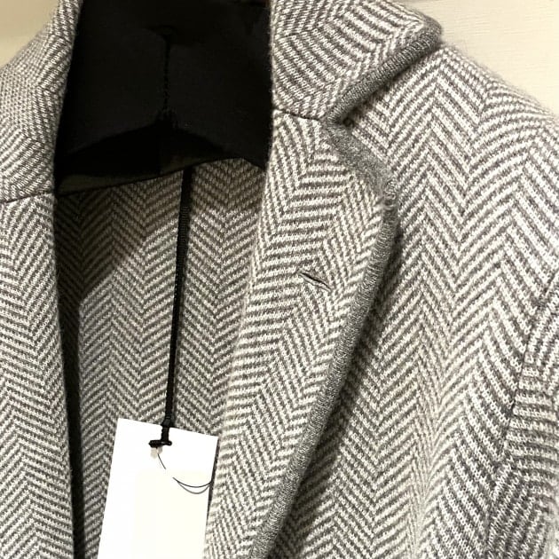 カーディガンの様な軽い着心地のニットジャケット今シーズンのお勧めです。無地は昨シーズンも大変人気があって早いうちから店頭から姿を消してしまいました。今シーズンのヘリンボーンは上品な着こなしが楽しめるので私個人的にも欲しい1着です。是非店頭でご覧になられてみてください。お待ちしております。