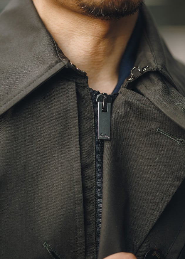 こちらは定番のリモンタナイロンを使用したシングルラグランスリーブコート。