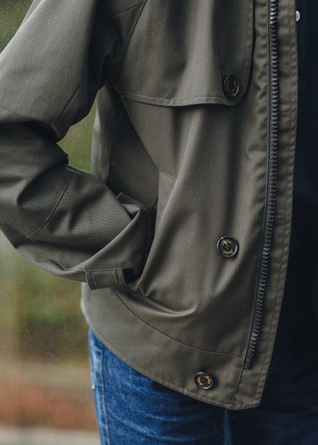 フィッティングやフードの立ち上がり方など、何度もサンプルを上げて拘って作り込みをした別注モデルとなります。こちらは特にライニングなどはつかない予定です。