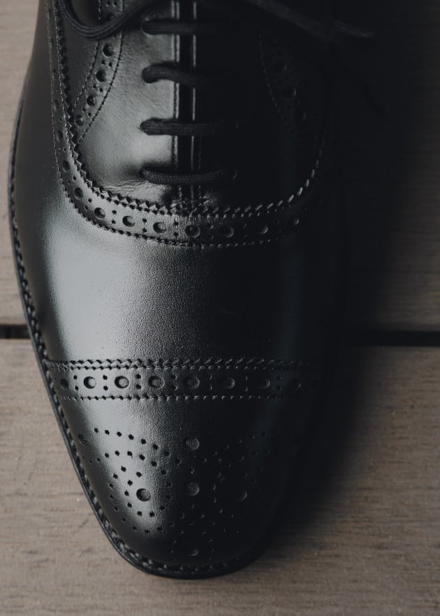 今回ご紹介する一足はこちら。完全別注にて仕上げたフルブローグシューズです。