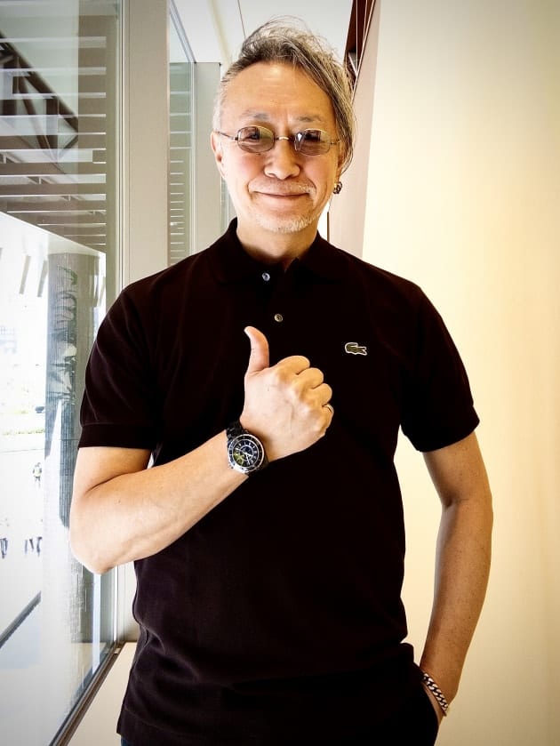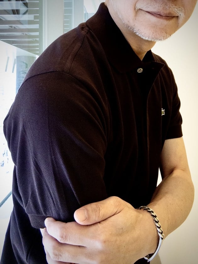 スタッフ高橋が着用している、高橋には若干にあっていない淡いピンクと、