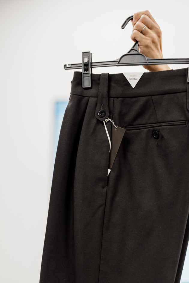 パターンから別注しており、股下をわずかに長く、股上は深めに設定することで、適度なゆとりのあるシルエットに仕上げています。