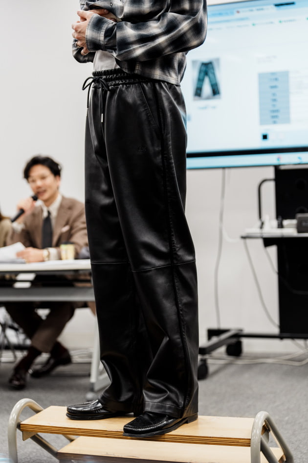 今回はシープスキンを使用したトラックパンツが登場。しなやかな羊革特有の軽さと柔らかさを活かし、レザーとは思えないほど快適な履き心地に仕上げられています。