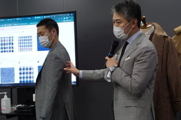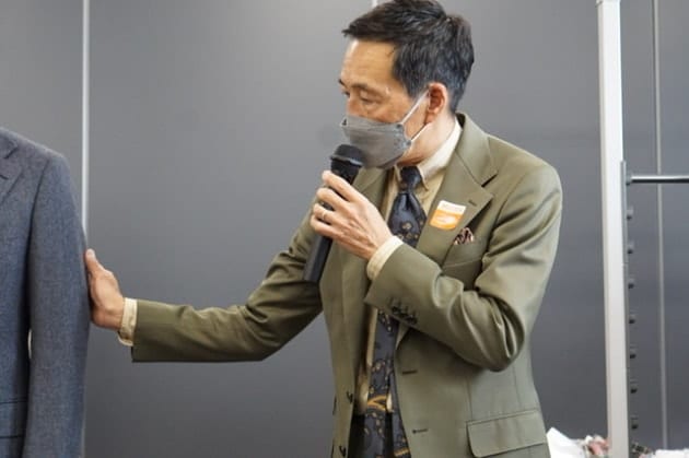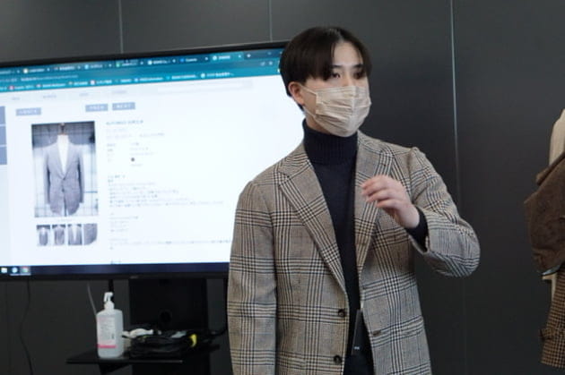 そのままだと着丈がものすごく長くて、さらに立体感が足りなかったので、<BEAMS F>のオリジナルを分解して参考に、調整してもらっています。それでも着丈はまだ長めです。