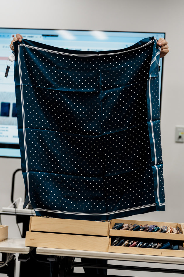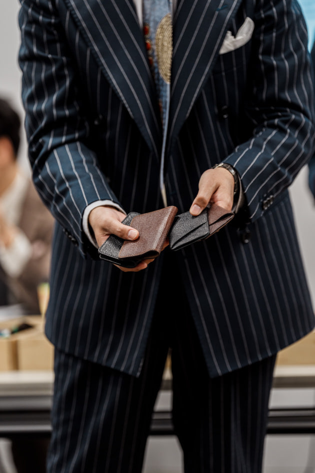 西口は以前<Anderson&Sheppard>のものを購入。元々作りが弱いからおすすめしないと店員からも言われていてが、3回ぐらいで破れたそう。