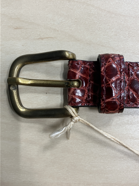ベルト最後は<BEAMS F>インポート製のリボンベルトをご紹介。サンプルまだありませんので、革サンプルとバックルデザインだけ載せておきます。