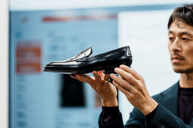 アッパーにはドイツのワインハイマー社によるボックスカーフを使用。日本人の足型に合わせて設計された LUNAラストを採用し、快適なフィット感と端正なシルエットを両立。