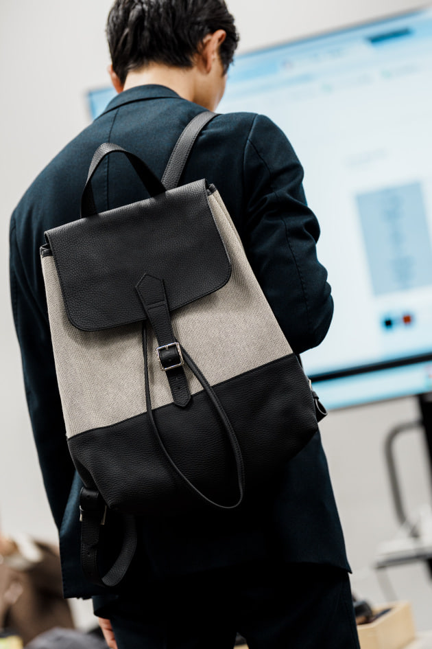 どこかレトロな佇まいが魅力のリュクサックを展開します、レザー部分は手裁ちによる温かみのある仕上がり。使用する素材はキャンバスもレザーもすべてフランス製で、どちらもメゾンブランドの製品に用いられる上質なものを採用しています。