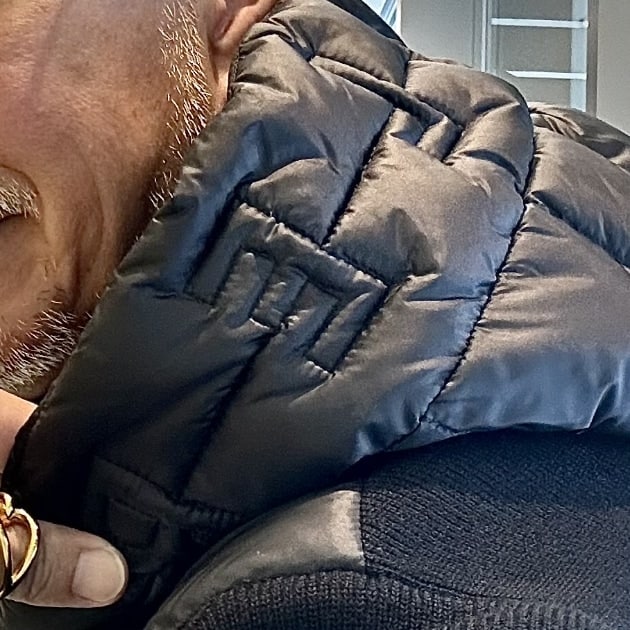 フードがやや大きめのバランス。両サイドにロゴ入りのストラップが付きます。このモデルの特徴的なデザインです。着用するとさほど目立たないディティールですけども。という訳で以下、着用画像です。