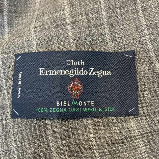 続きまして「15 POINT 7 / フィフティーン ポイント セブン」です。この服地のペットネームは使用されている原毛が15.7マイクロンという事から付けられたネームです。以前にもご紹介しておりますが、原毛のマイクロンという単位が小さくなるほど繊維が細くなり肌触りの良い上質な服地を織ることが出来ます。この15.7マイクロンのウールはカシミアと同等の繊維の細さでその原毛で織り上げられたフランネルの肌触りや着用感がとても良いという事は言うまでもないと思います。ベーシックだからこそ上質な服地で仕立てられたフランネルスーツは着る方の信用と信頼が感じられるスペシャルスーツではないでしょうか。