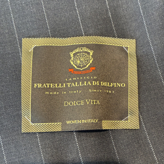 こちらは「TONIK / トニック」です。1950年代に発表されたこの服地も<DOUMEUIL>社を代表する服地です。モヘアを混紡させたこの服地の特徴はシワになりずらくプレスが取れにくいという点です。そのような特徴から高級テーラーで人気を呼び、確固たる地位を築いた服地です。その当時の「TONIK」を現代的に軽量化したのが現在の「TONIK」です。この服地も英国的なパリッとした仕立て上がりが特徴で、とてもきれいなシルエットをもったスーツです。ちなみにペットネームの由来は、この服地が完成したときに「ジン・トニック」で乾杯したというエピソードから付けられたという事です。