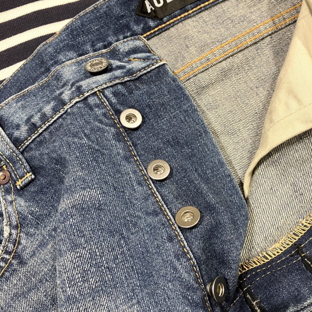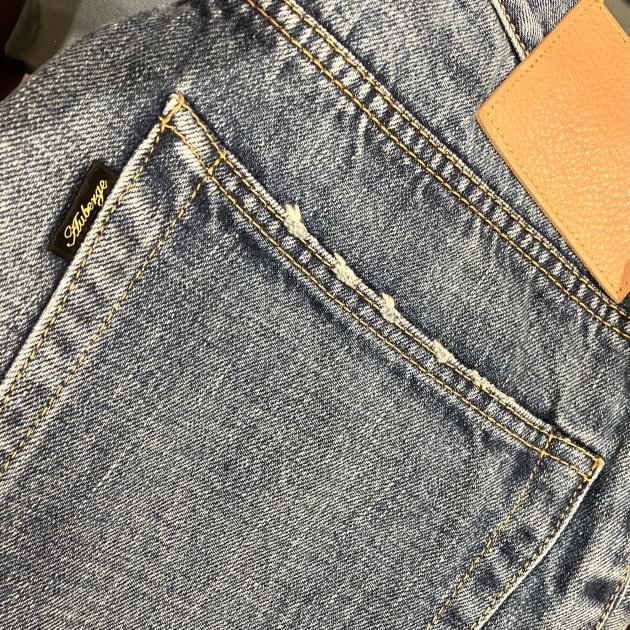 本来はストーンウォッシュ加工を施すアイテムですが、別注で製品染めまでにとどめております。