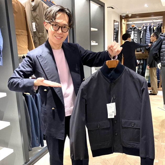 ボディはバーズアイのような織りで柄感を表現していますね。春夏のアイテムはシンプルになりがちなので、こういう1着でアクセントになるアイテムは重宝しそうですね。