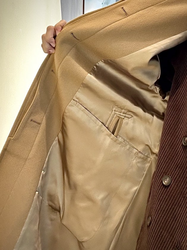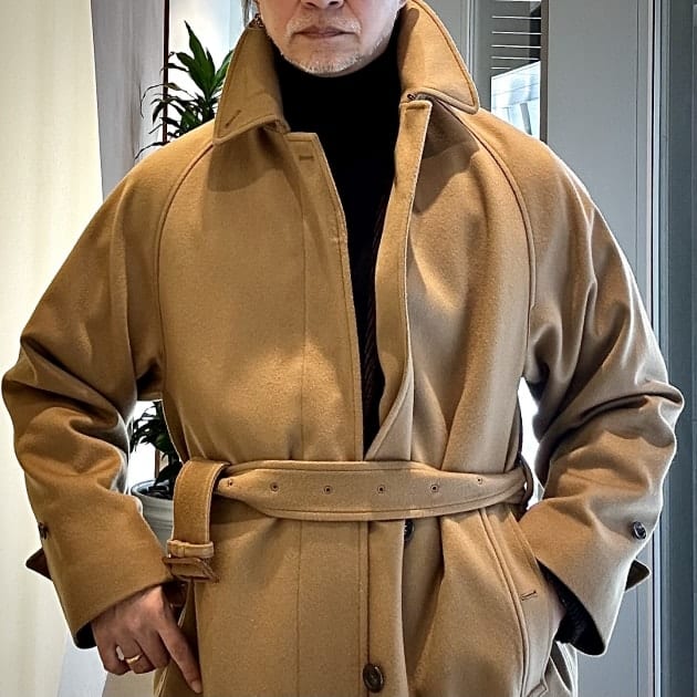 英国ヴィンテージコートをモダナイズドしたバルカラーコート。私身長170㎝体重63kgでコートサイズ38を着用しております。