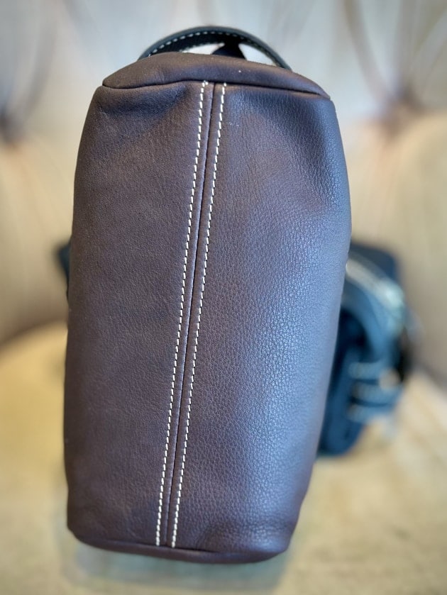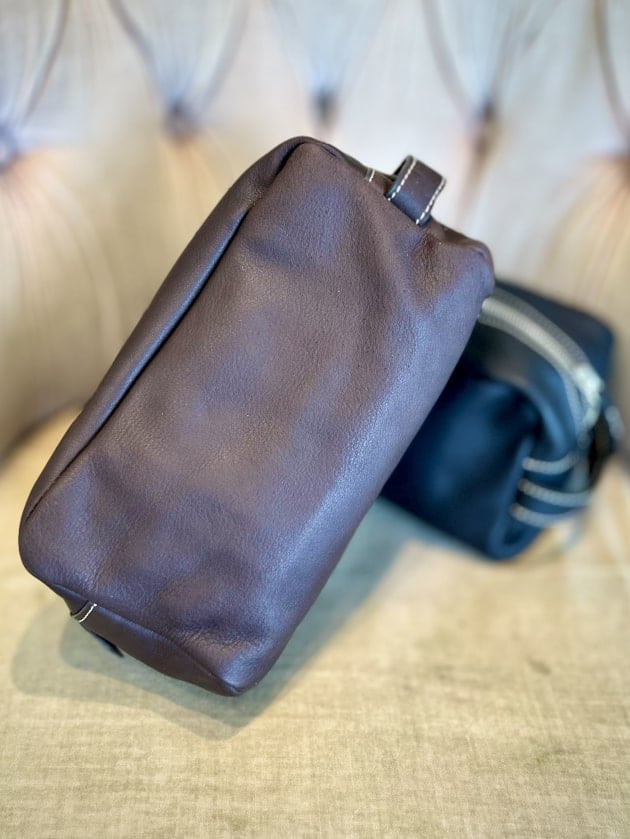 レザーはナチュラルなシボを活かした素上げに近い仕上げで、顔料を使わないことで非常に自然な表情と柔らかさを実現しています。さらに、革を0.8ミリまで薄く漉き、縫い目を極力減らすことで軽量かつしなやかなつくりに。ブランド史上もっとも軽さと繊細さを追求したバッグです。