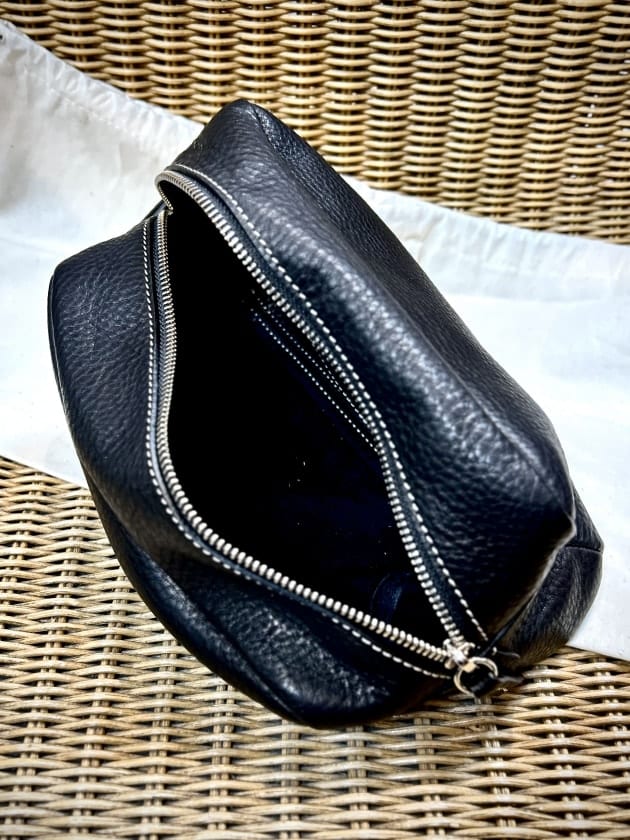 別注でオールレザーポーチも展開。インラインモデルをベースに、ストラップと両端のパーツを排することで、よりミニマルで使いやすいデザインに仕上げています。価格は4万円台と、上質なフランスレザーを使ったアイテムとして魅力的なプライスです。