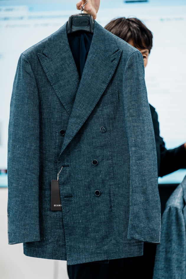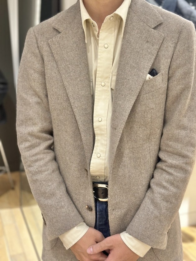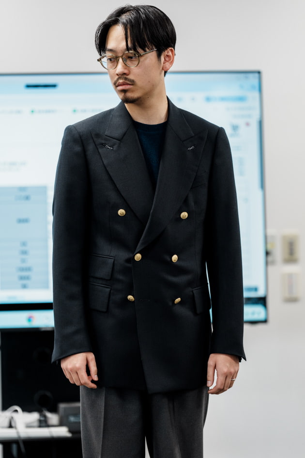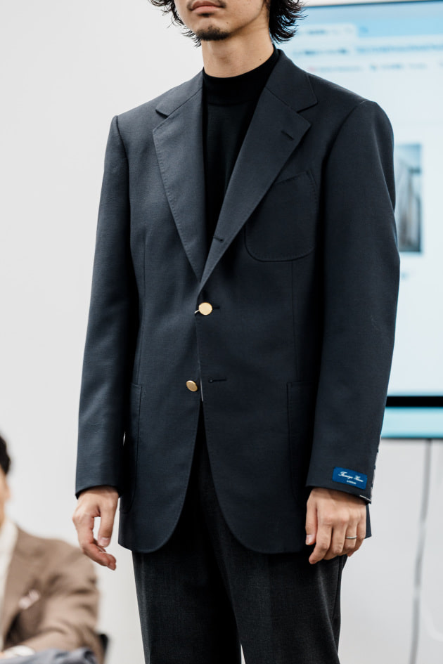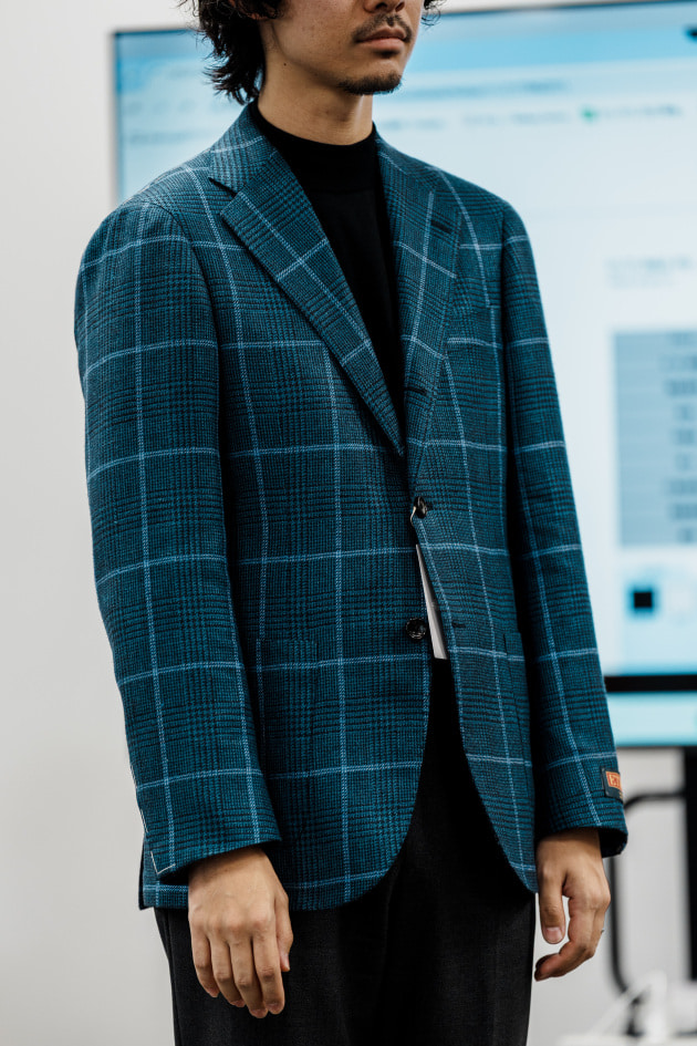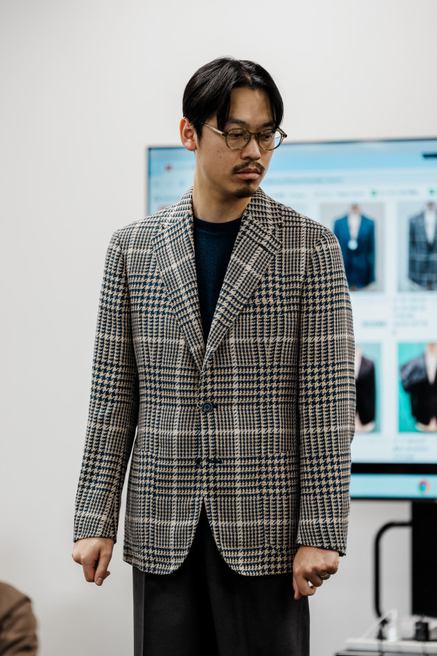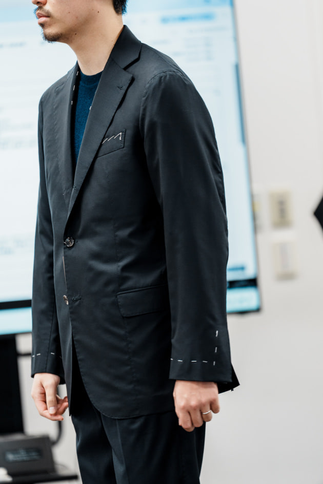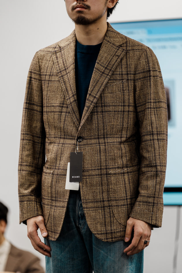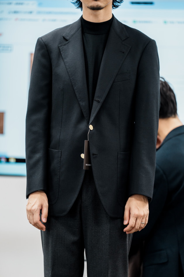 そのままだと着丈がものすごく長くて、さらに立体感が足りなかったので、<BEAMS F>のオリジナルを分解して参考に、調整してもらっています。それでも着丈はまだ長めです。