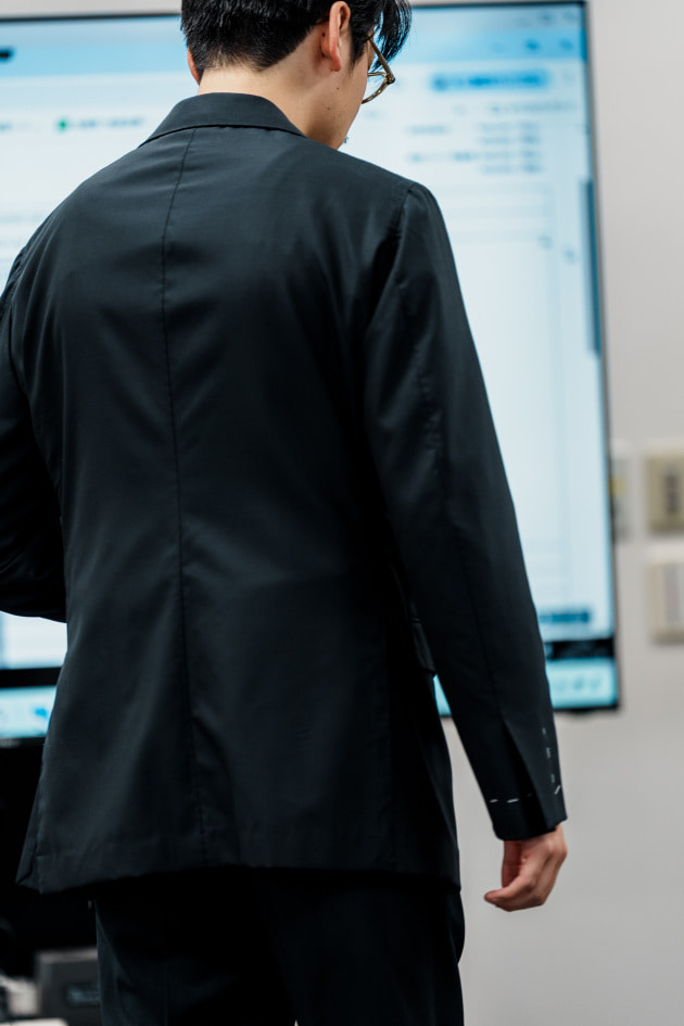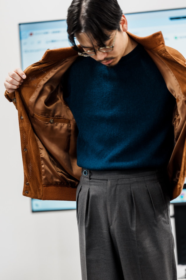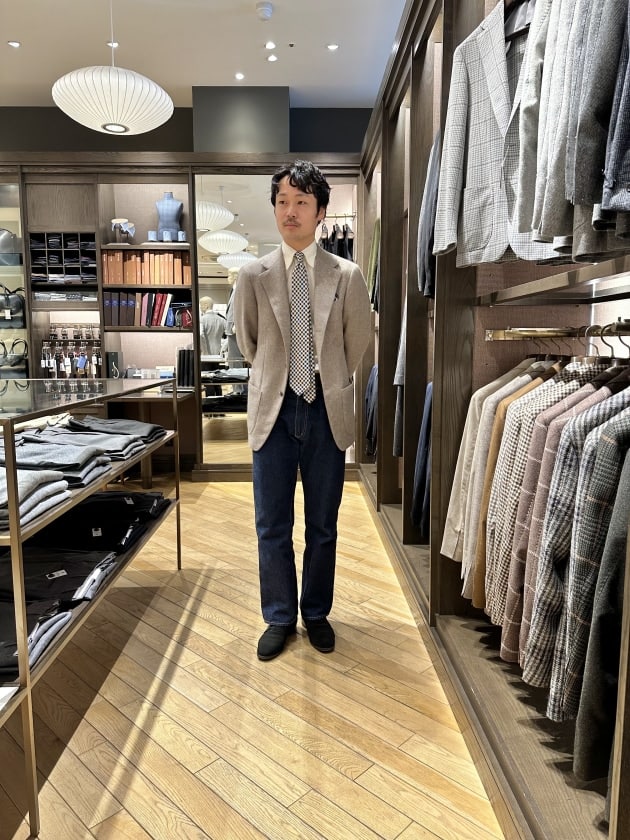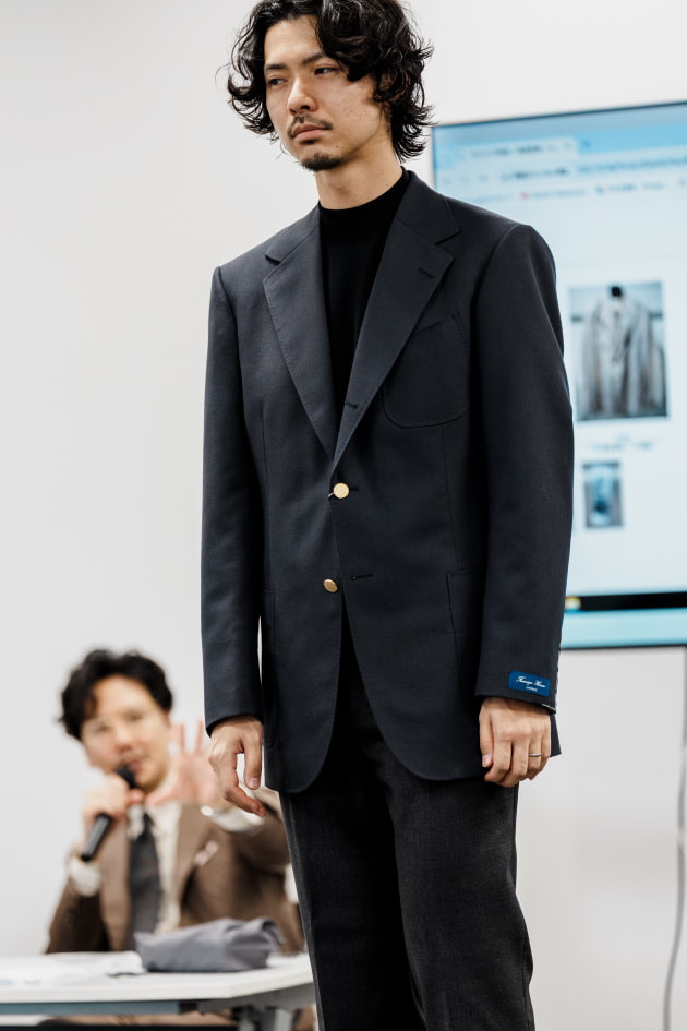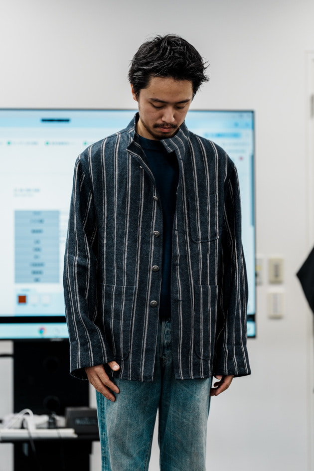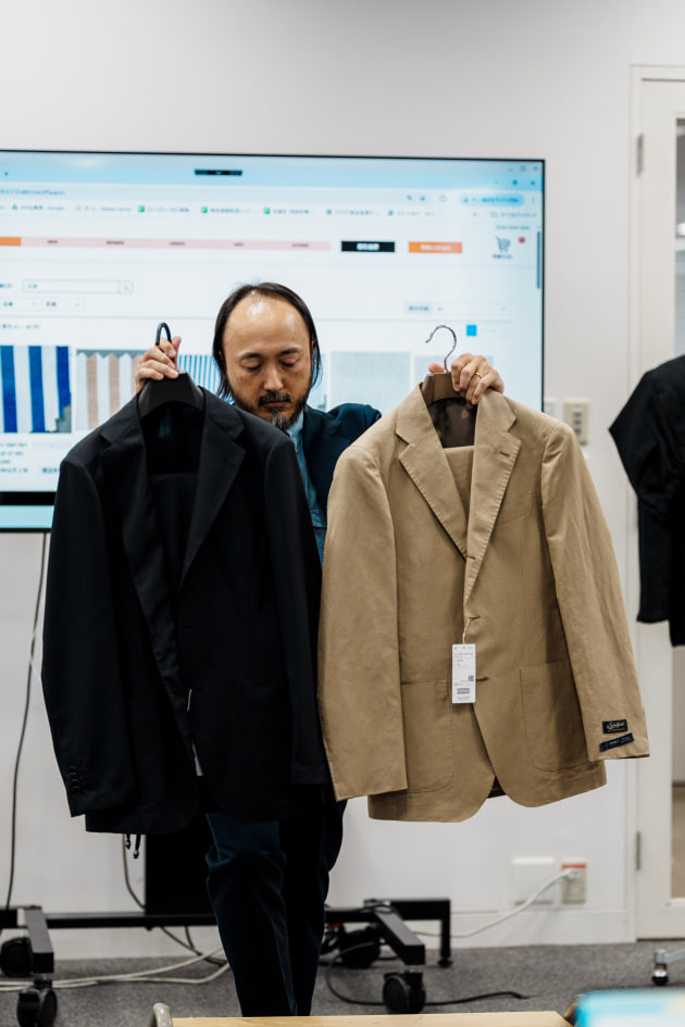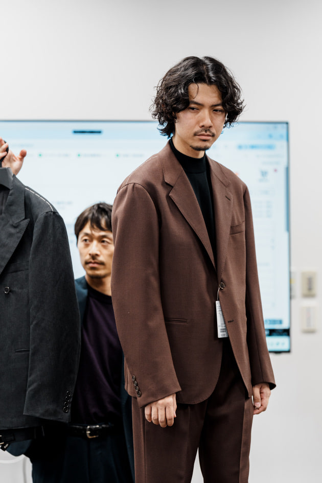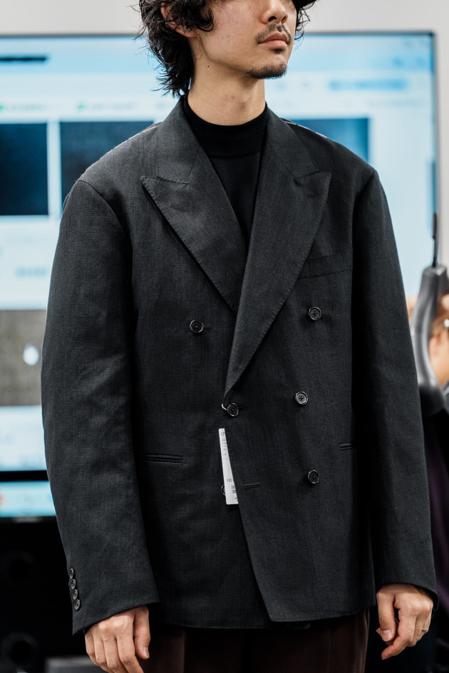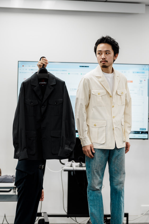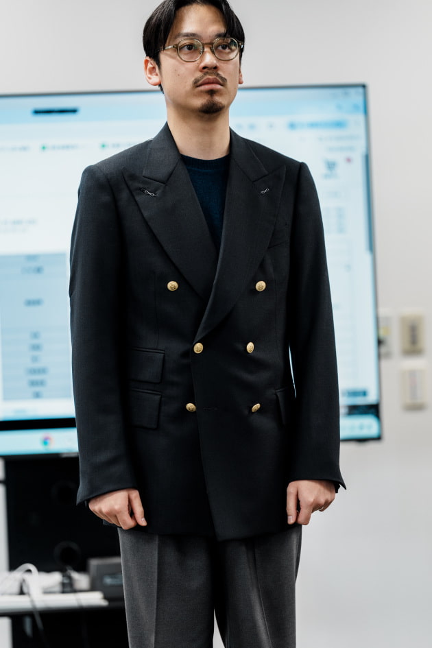 そのままだと着丈がものすごく長くて、さらに立体感が足りなかったので、<BEAMS F>のオリジナルを分解して参考に、調整してもらっています。それでも着丈はまだ長めです。
