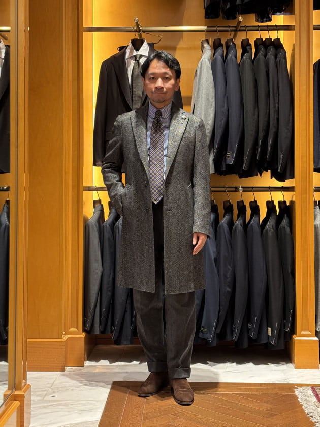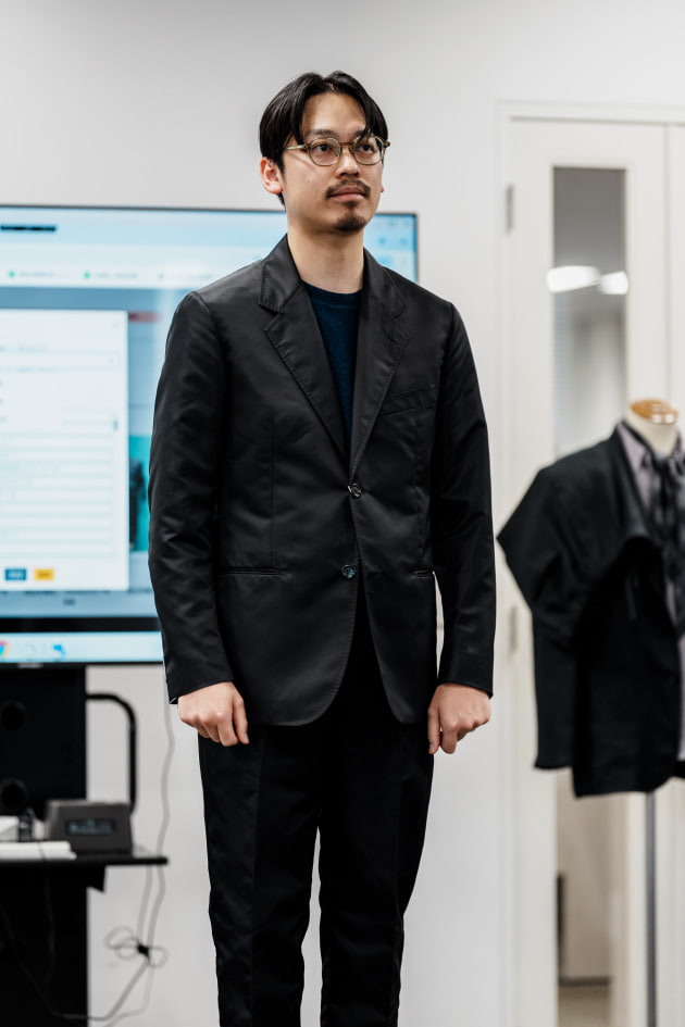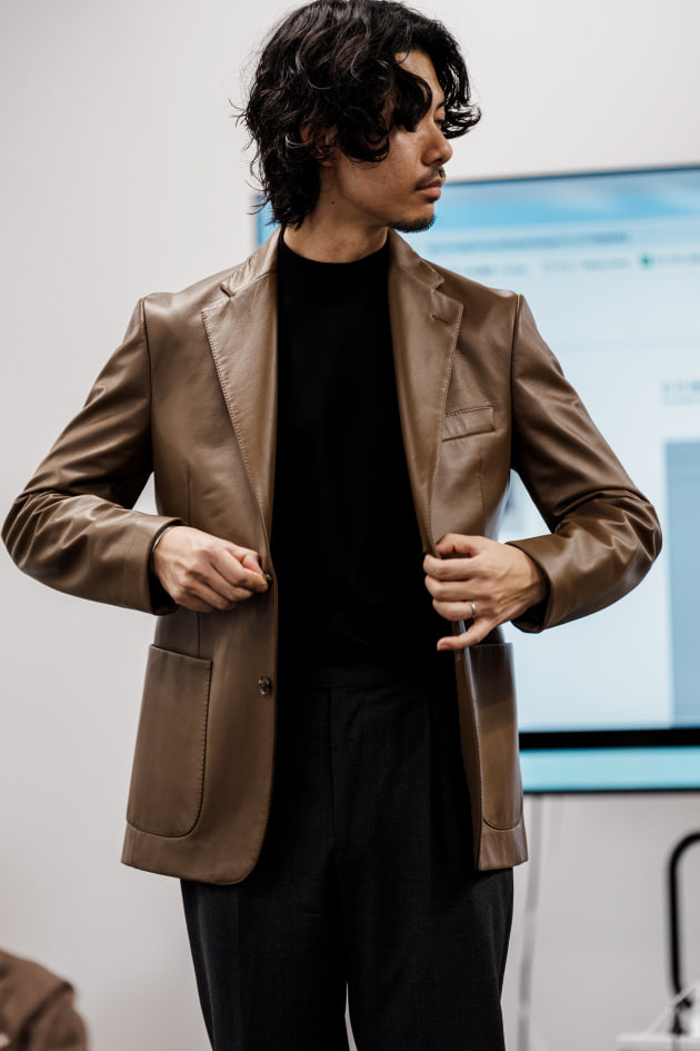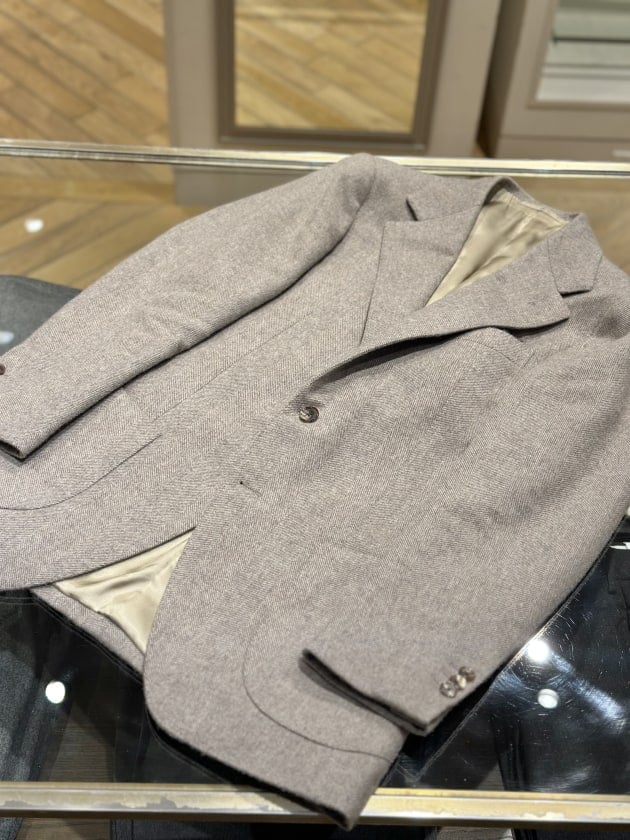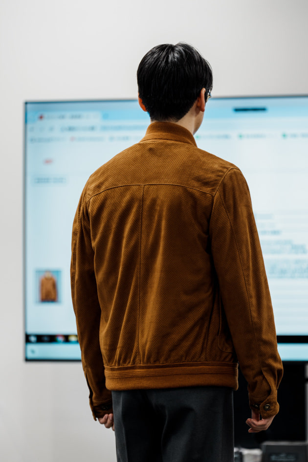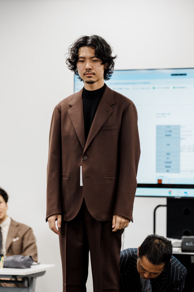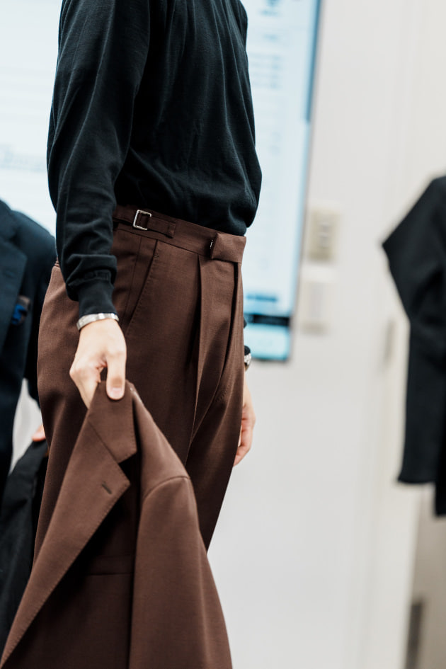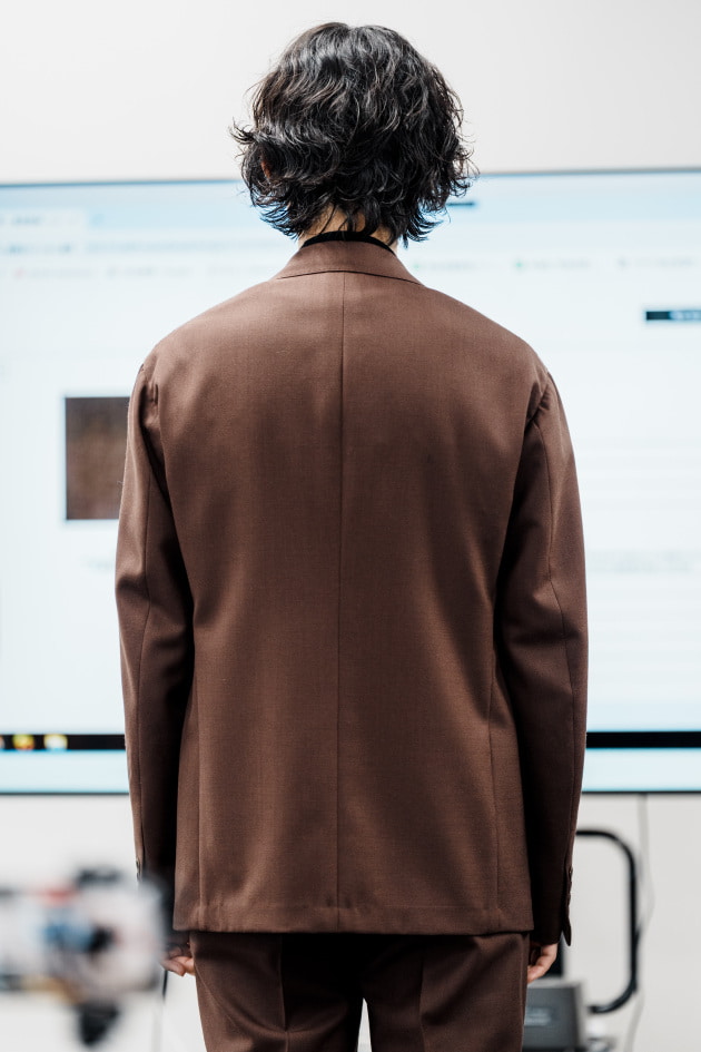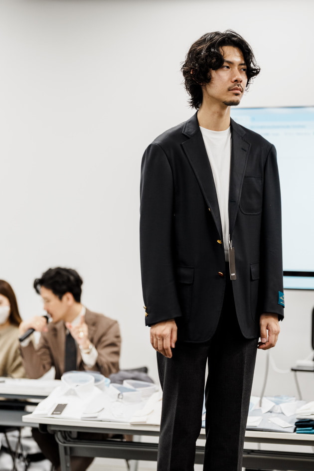 そのままだと着丈がものすごく長くて、さらに立体感が足りなかったので、<BEAMS F>のオリジナルを分解して参考に、調整してもらっています。それでも着丈はまだ長めです。