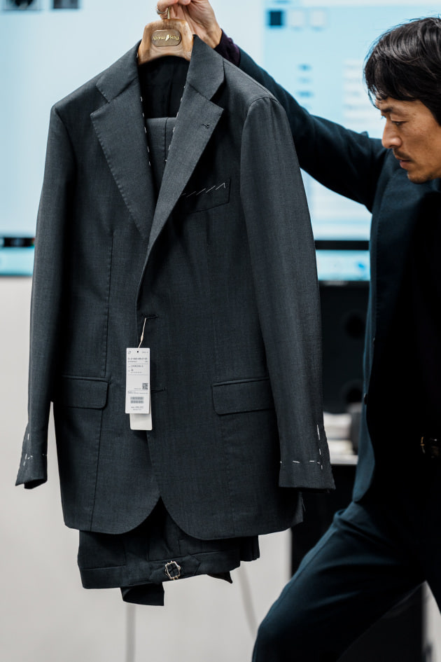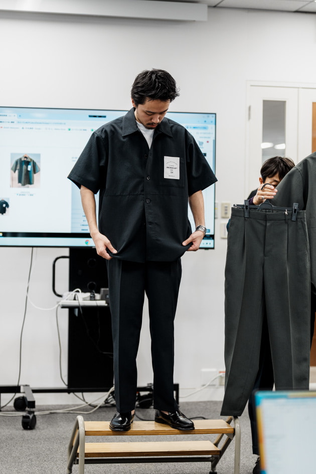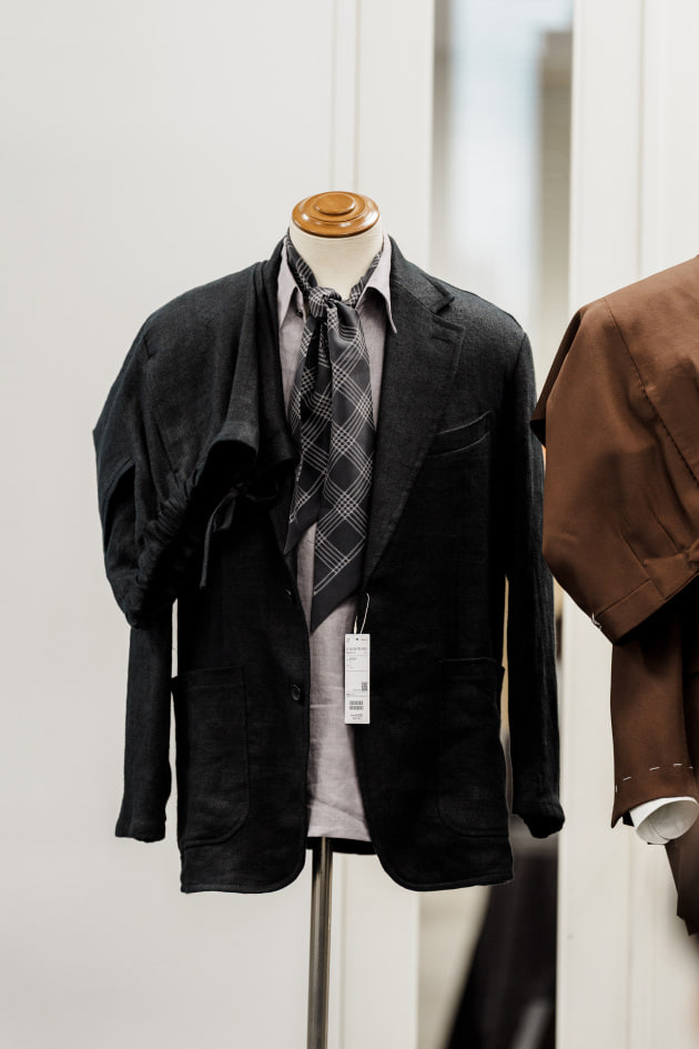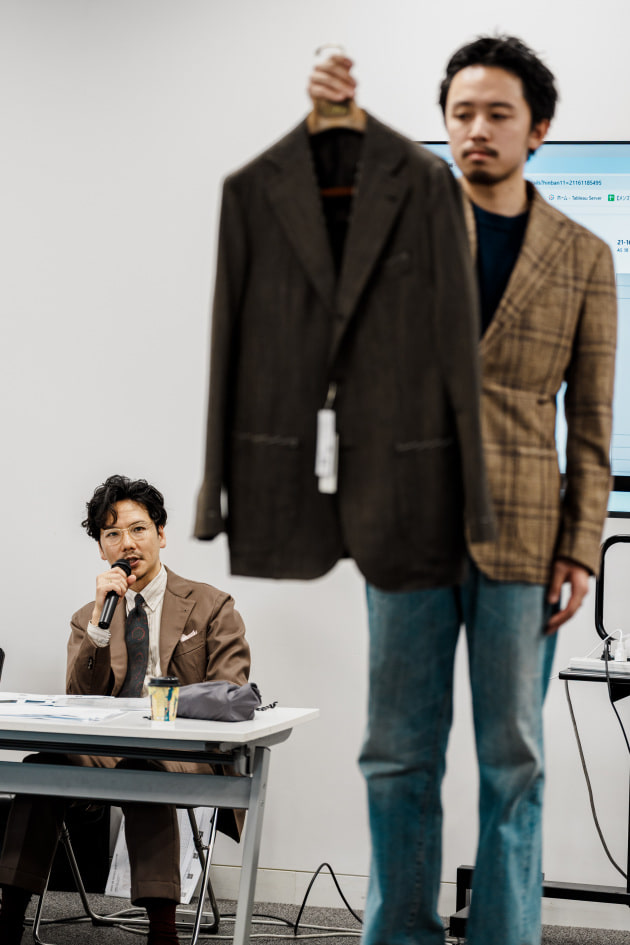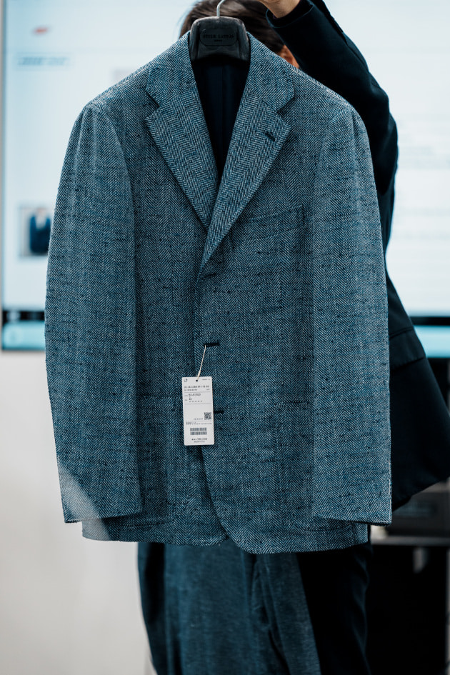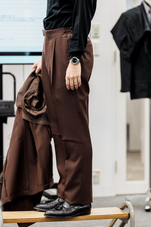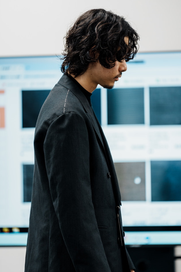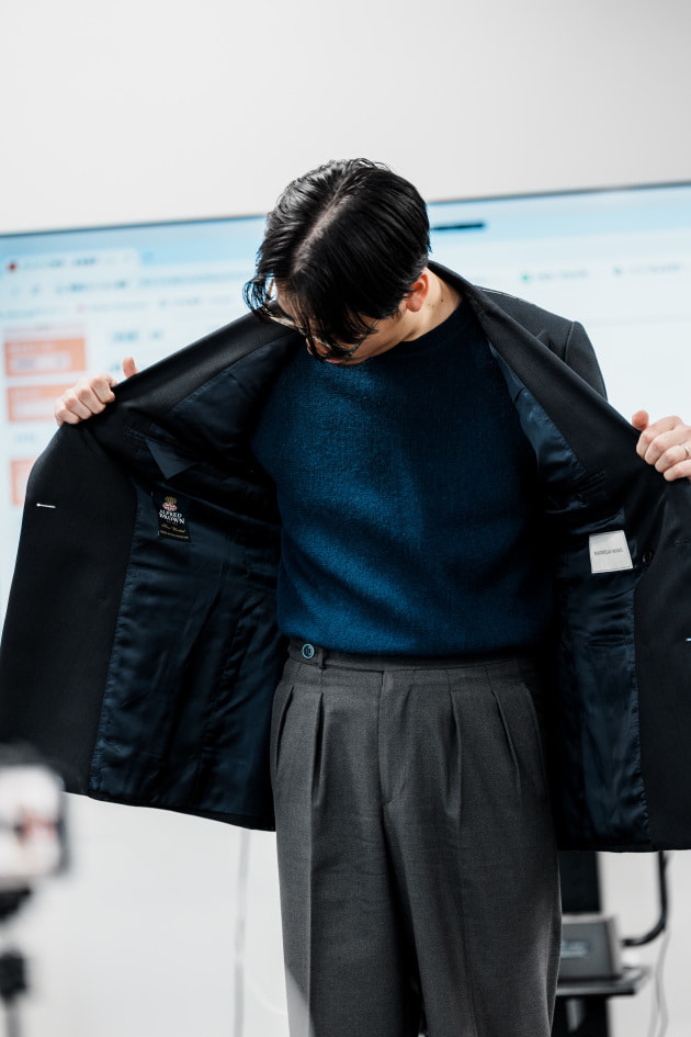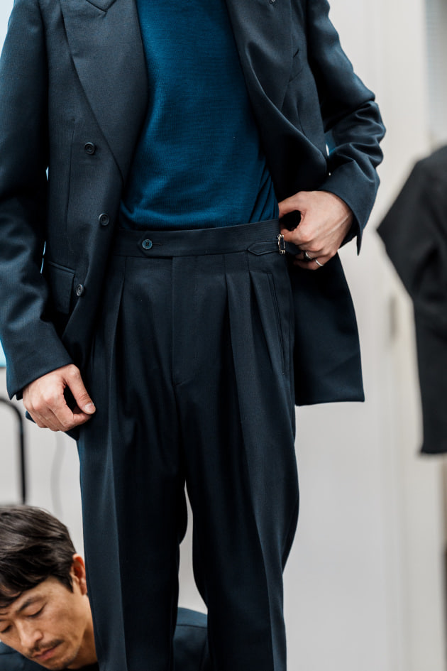 そのままだと着丈がものすごく長くて、さらに立体感が足りなかったので、<BEAMS F>のオリジナルを分解して参考に、調整してもらっています。それでも着丈はまだ長めです。