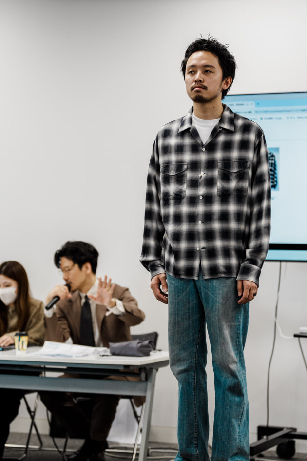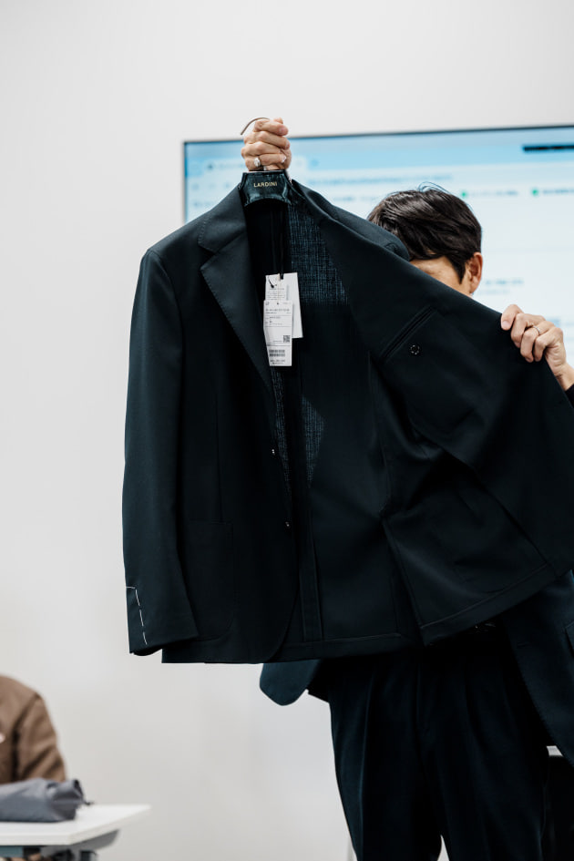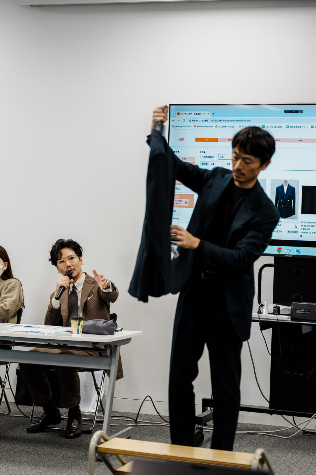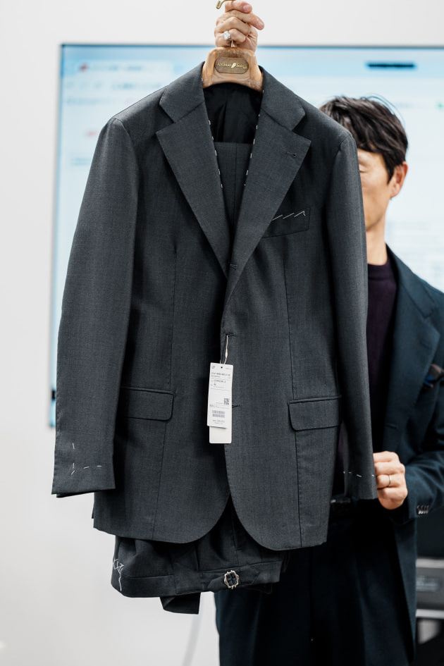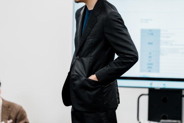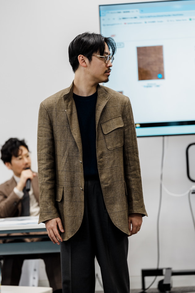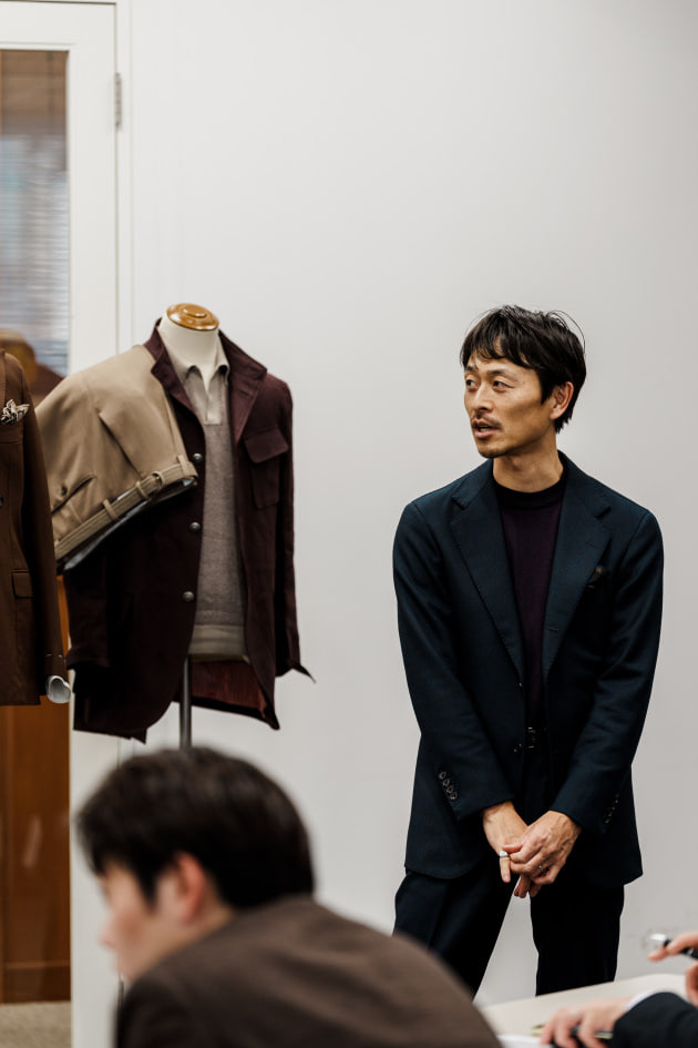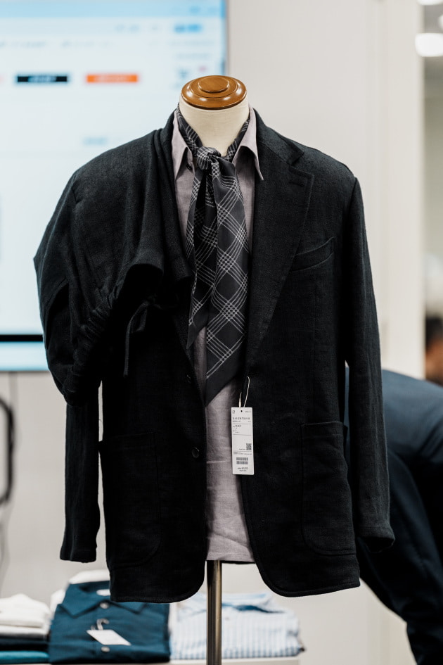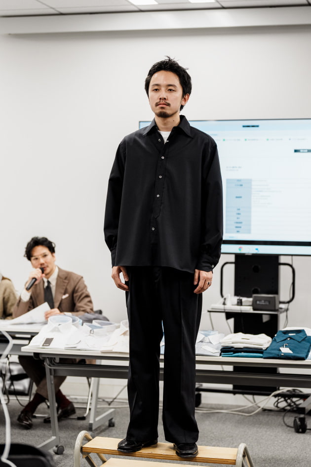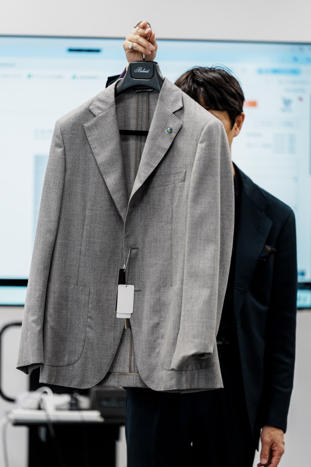そのままだと着丈がものすごく長くて、さらに立体感が足りなかったので、<BEAMS F>のオリジナルを分解して参考に、調整してもらっています。それでも着丈はまだ長めです。