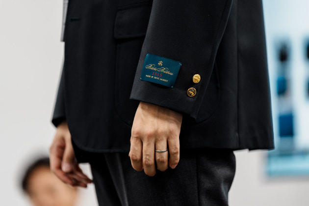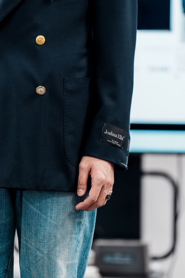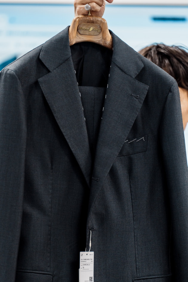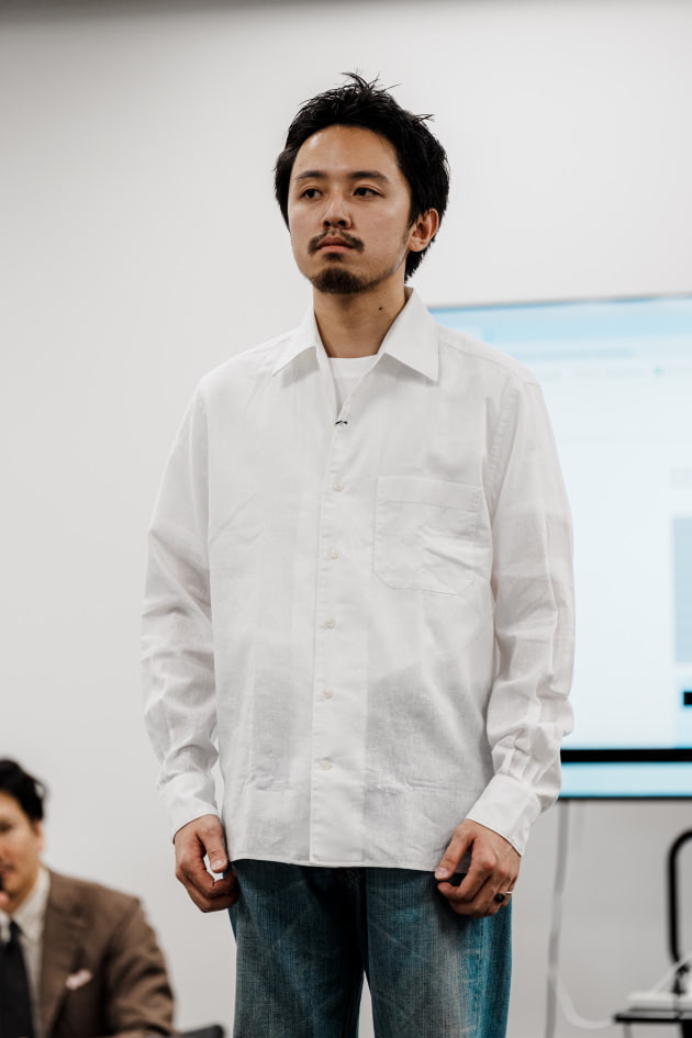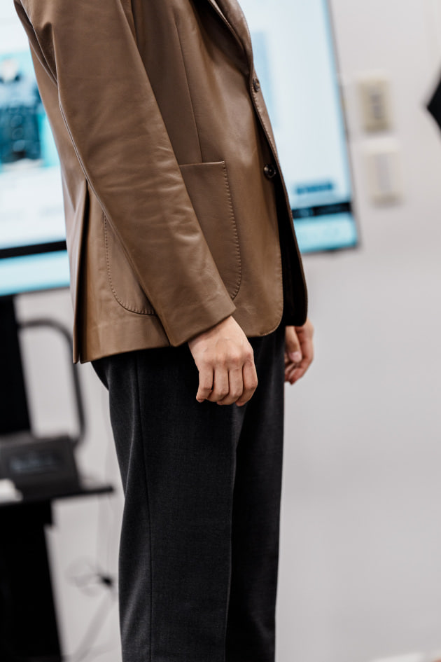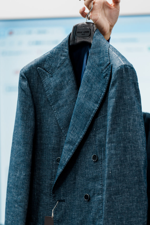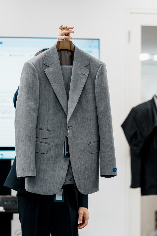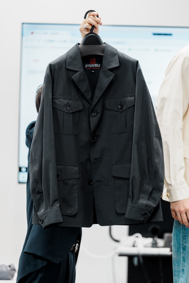 袖カフスですが、シャツジャケット、というにはドレスシャツ並みに小さかったので、今回ぐるりで3センチ大きくする修正を加えています。よりリラックスした雰囲気で来てほしいという意図が感じ取れますね。