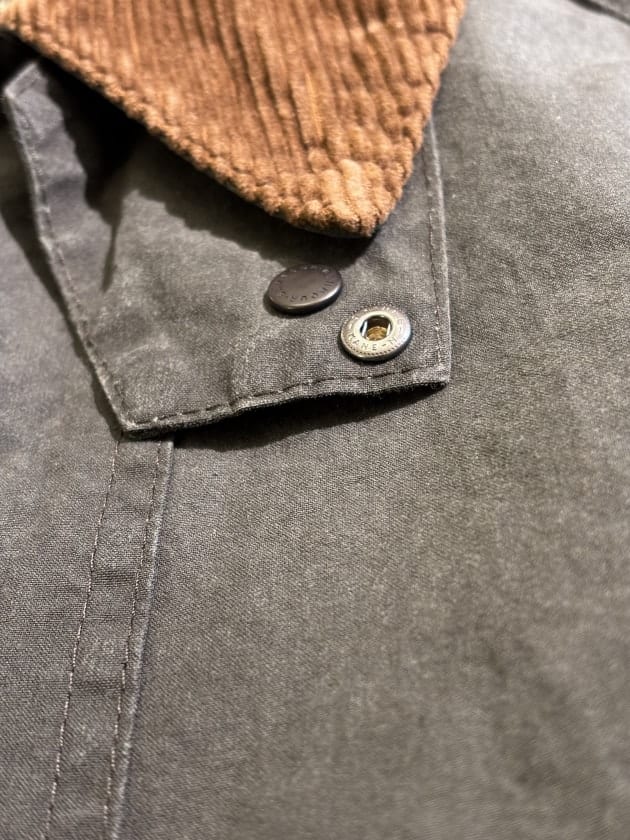 前縦のレールスティッチ、襟の感じも英国製らしく、カフは2つボタン。