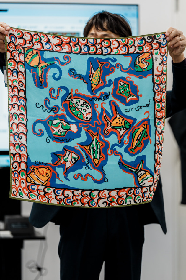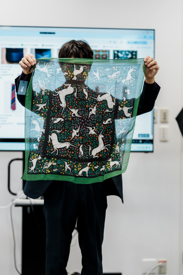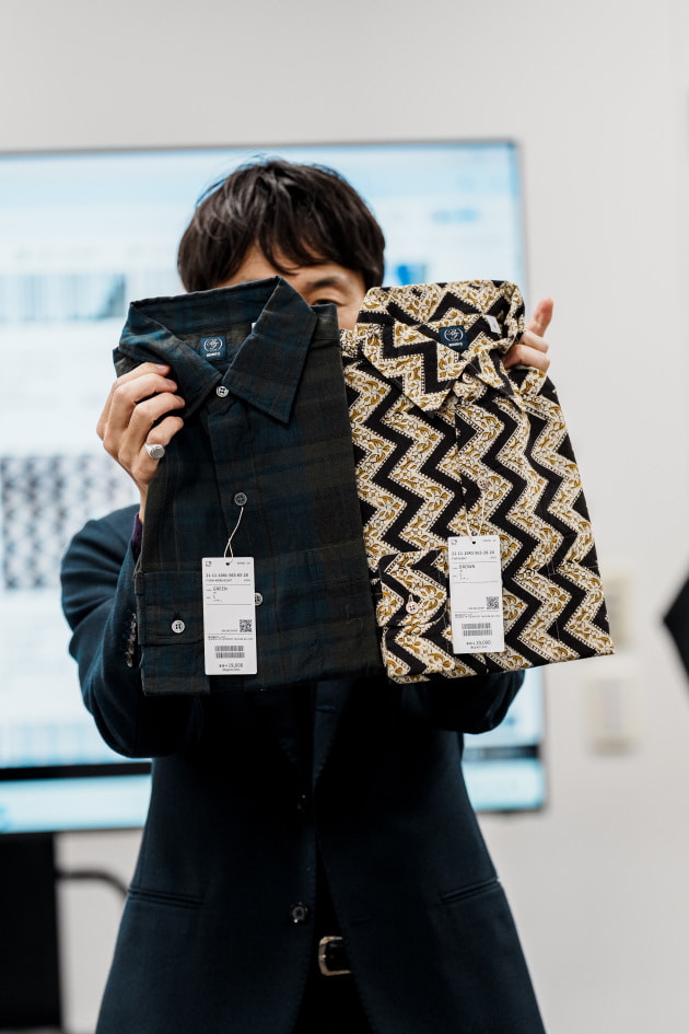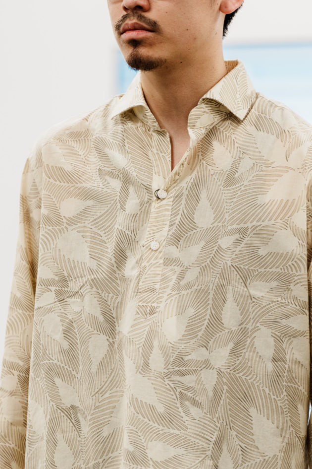 ディレクター中村バイイング、別注のプリント生地を載せたプルオーバーシャツです。