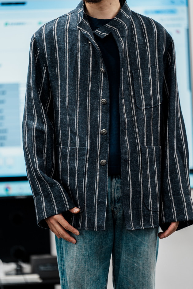 Placide 別注 ストライプ バンドカラーシャツジャケット