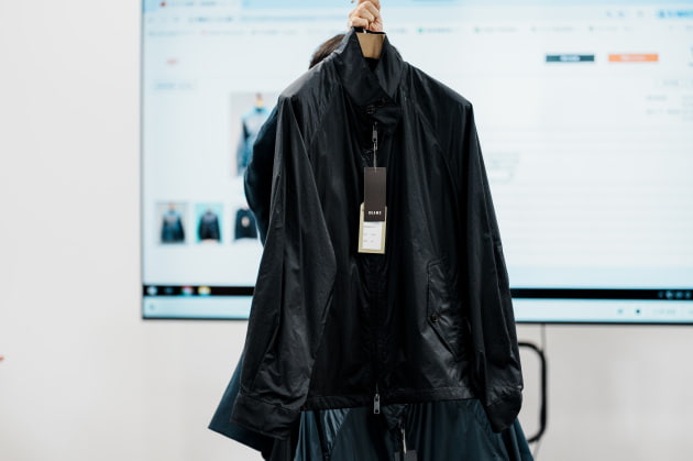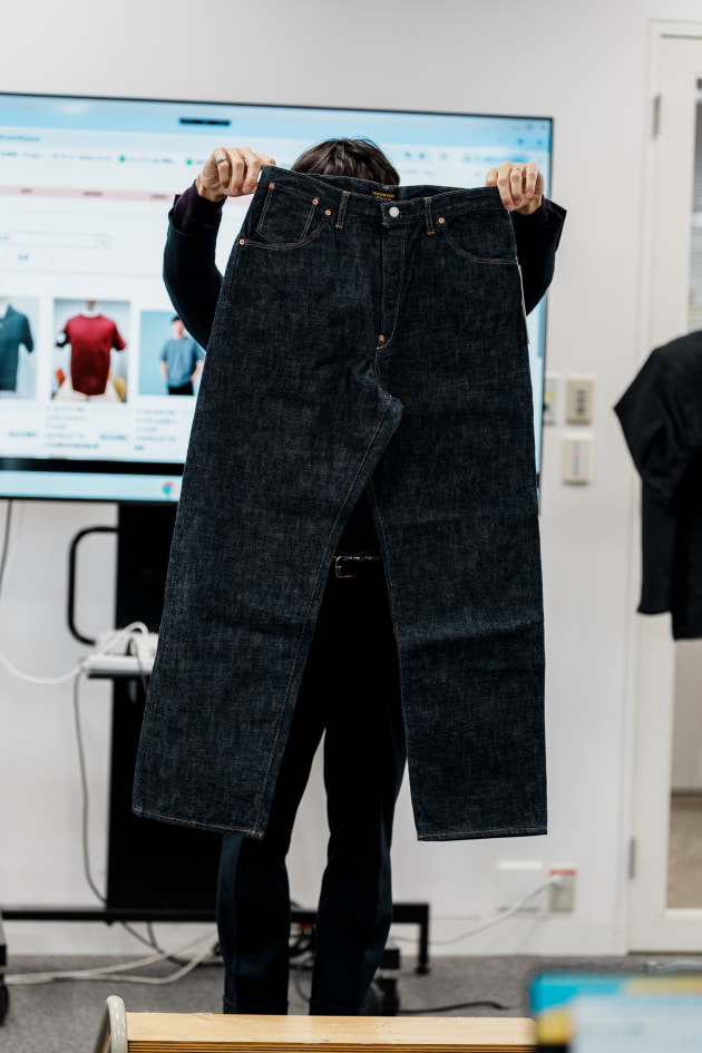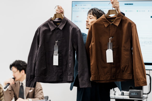 製品洗いして納品されるので少しシワが入る感じで店頭に並ぶかと思います。