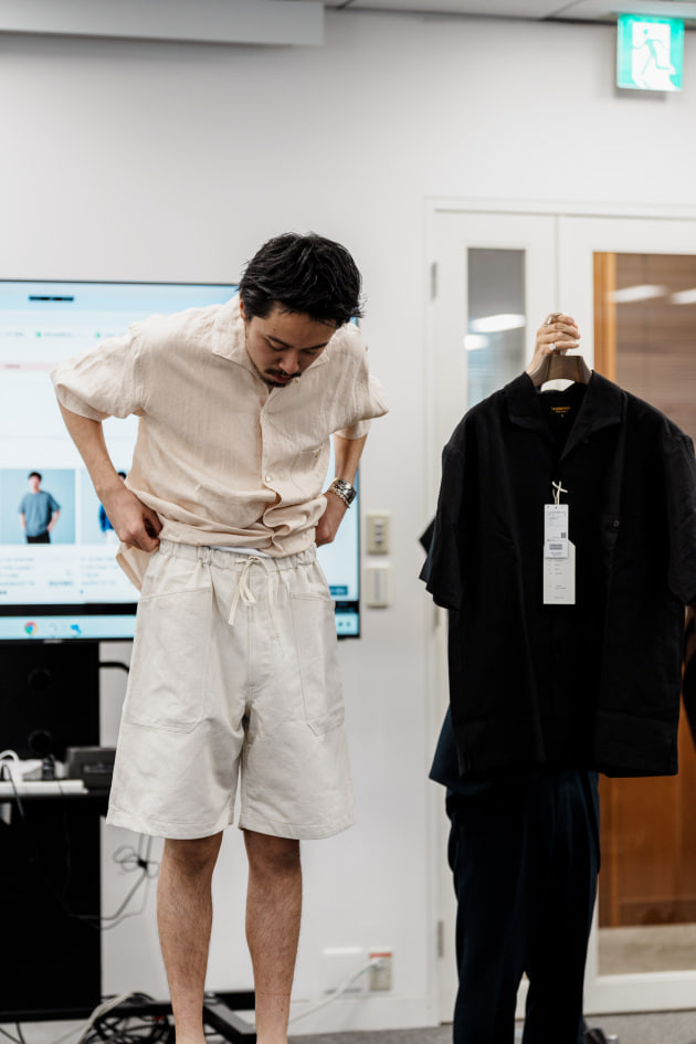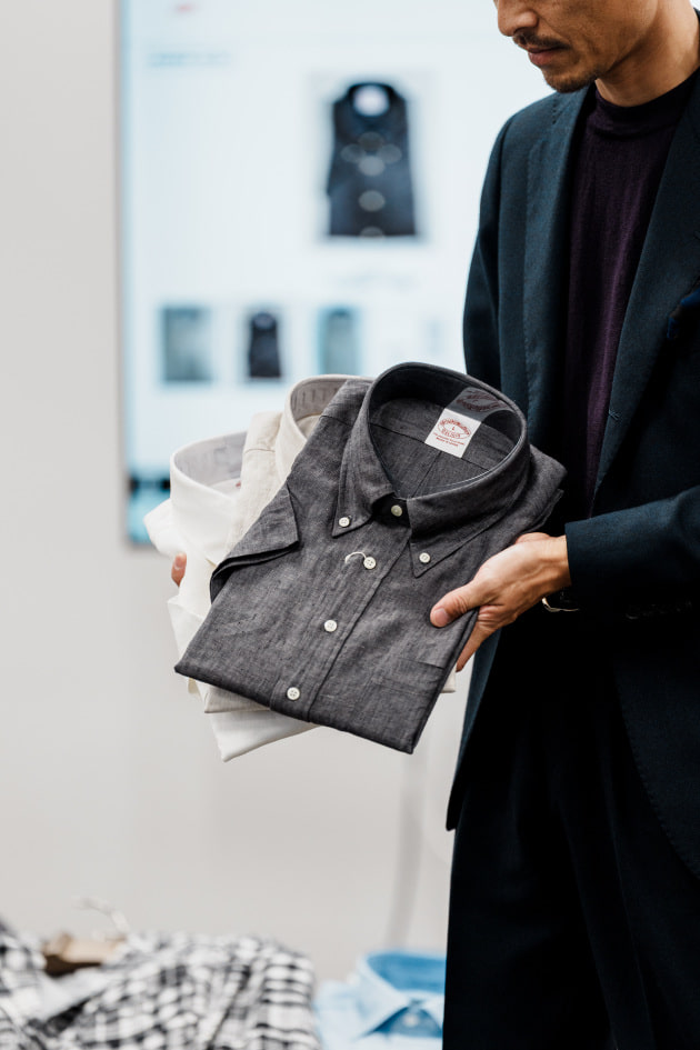 もともとロングスリーブで展開していたモデルを半袖に変更し、生地も載せ替えています。