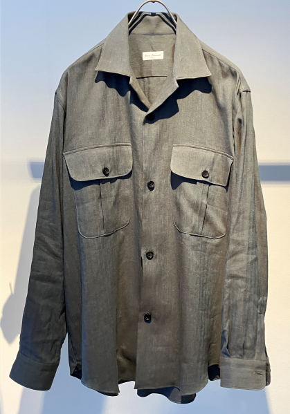 ビスコースリネンブレンドの、色気のあるオチ感のあるシャツです。