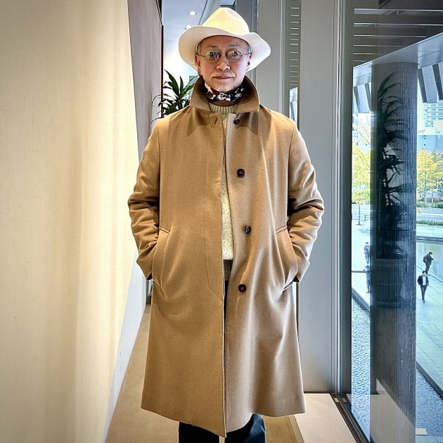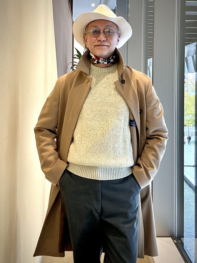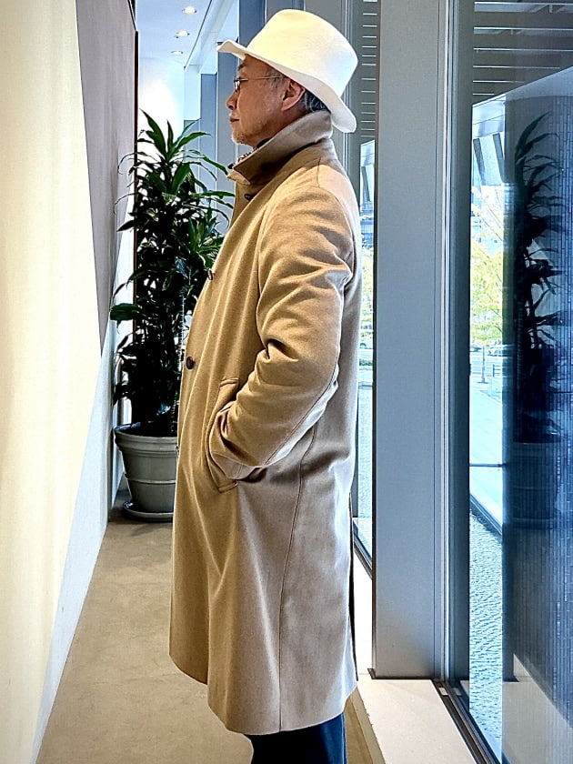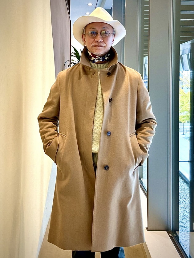 明るいライトブラウンですが、ハウンドトゥースになることでトーンが抑えられ、着用しやすいバランスに。こちらも3種混でそれぞれの生地のいいとこ取りをしています。