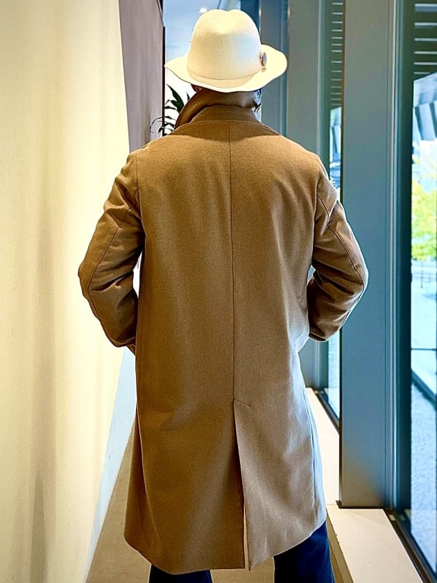 ラペル幅、形状、フロントカットなどの見た目などのベースはそのままに、着心地の良いナポリ物の寸法、バランスを参考にしながら身頃のバランスを抜本的に見直しました。