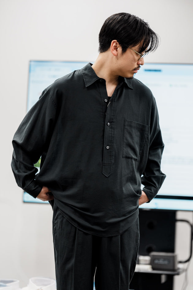 ハンガーで吊っている状態だとより背中の生地分量が多くなっているのがわかりますね。このドレープ感が身体に合わせて立体的になっている証拠。<STILE LATINO>とかもハンギングしているとこんな感じになるので、これは楽しみです。
