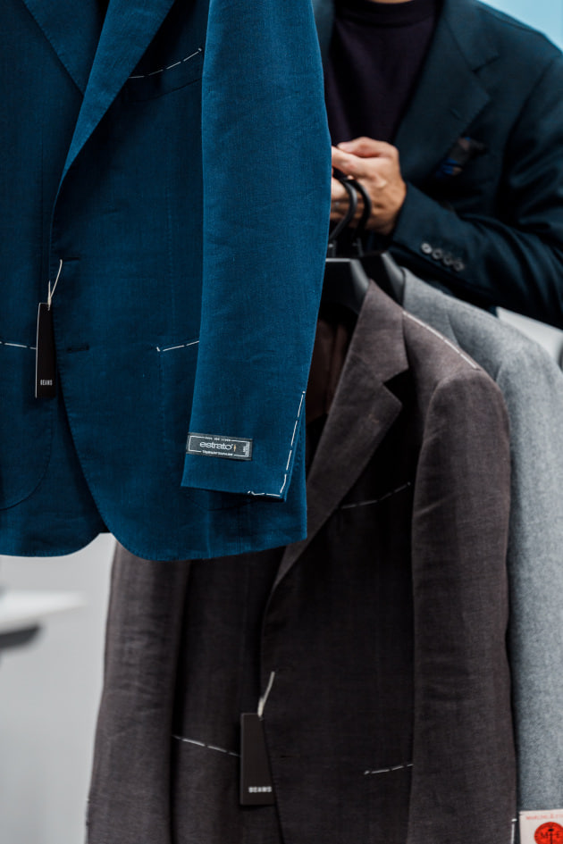 もちろん今までのサイズでピッタリだったからよかったのに、という方もいらっしゃるかと思いますが、細かく気にされるならカスタムオーダーか、お直しで調整できます。<BEAMS F>のスーツは基本サイドベンツで、脇部分は切り込みを入れずに肩倒しにしているので出し詰めしやすい設定になっており(2センチ分出しができるぐらい縫い代がある)、この調整幅があれば、ほとんどのケースで問題ないかと思われます。むしろ52は大きくなりますし、42はより小さくなるので、今まで既製品のサイズでハマらなかった方もハマるようになった可能性があります。