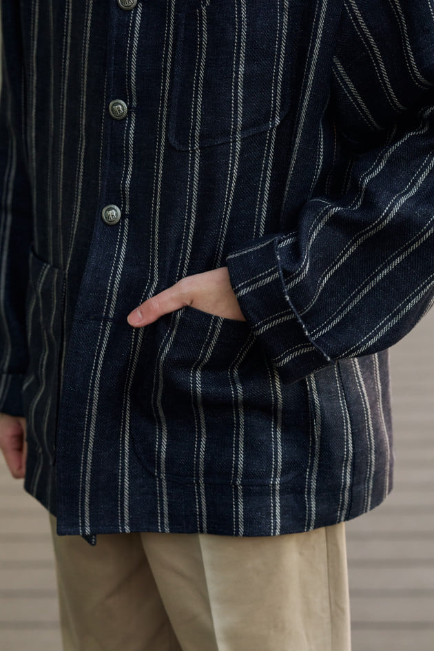 Chato Lufsen EASY BORESTIER リネン ストライプ スタンドカラー ジャケット