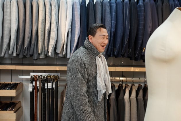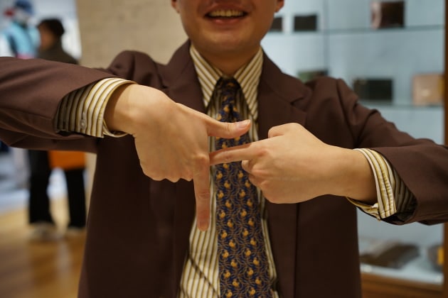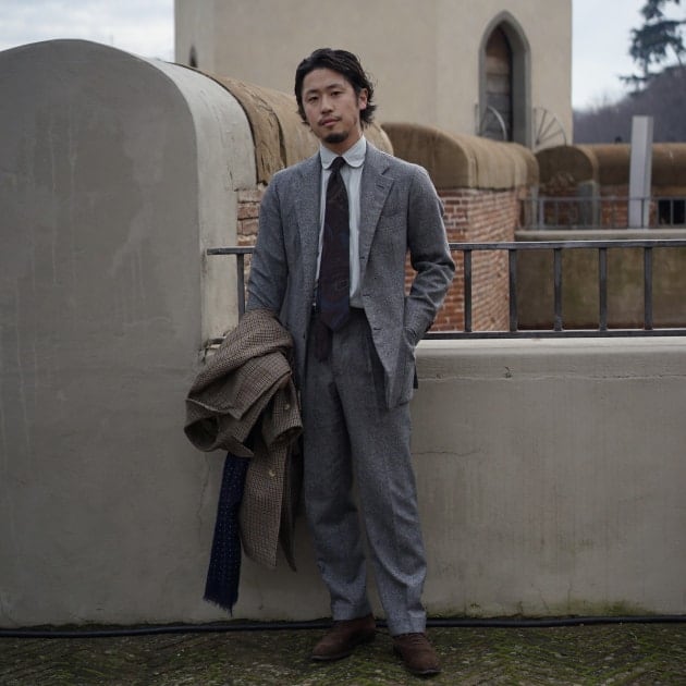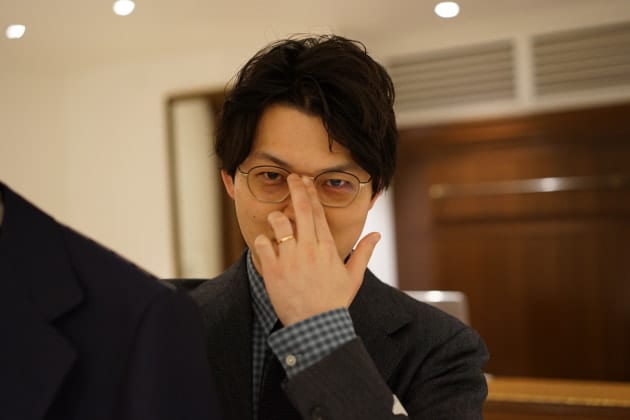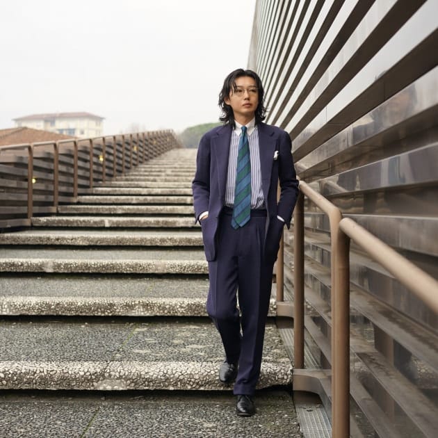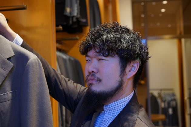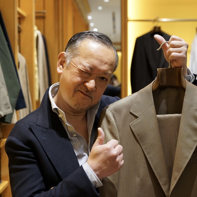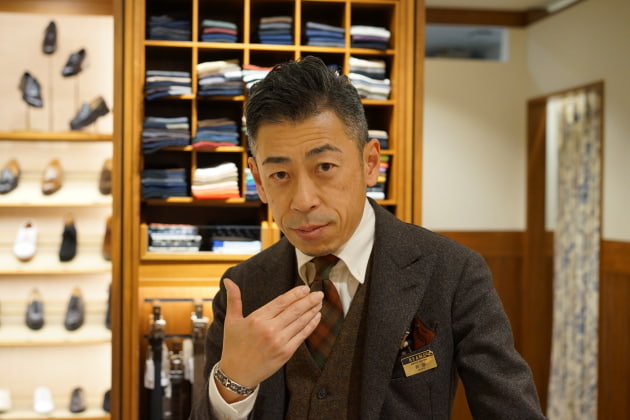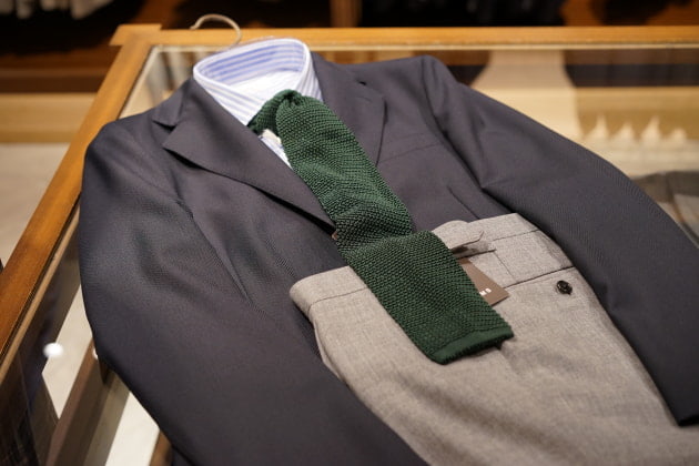 細田はネクタイの商談に備えて、かなり堅いスタイリング