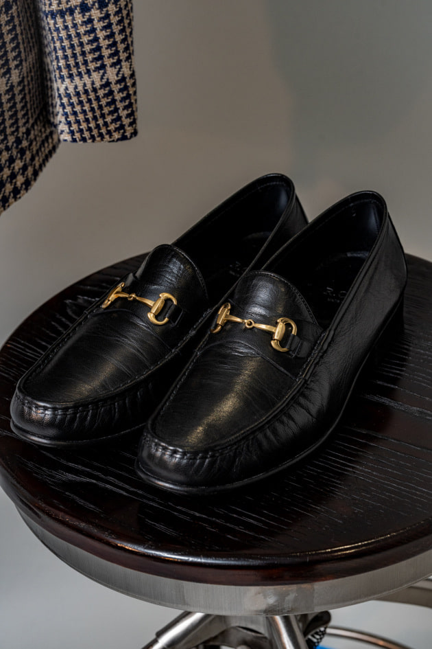 前述の通り馴染みが早いのはもちろん、ドレススタイルから意外と綺麗めカジュアルスタイルにまで合わせやすいのがこのビットローファーで、オンオフ問わず履いて早6年。