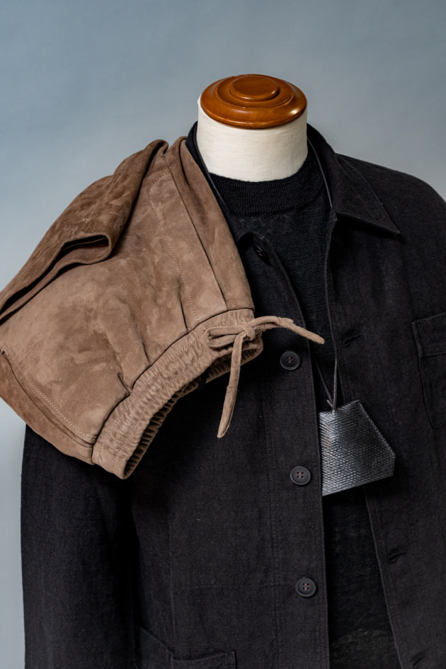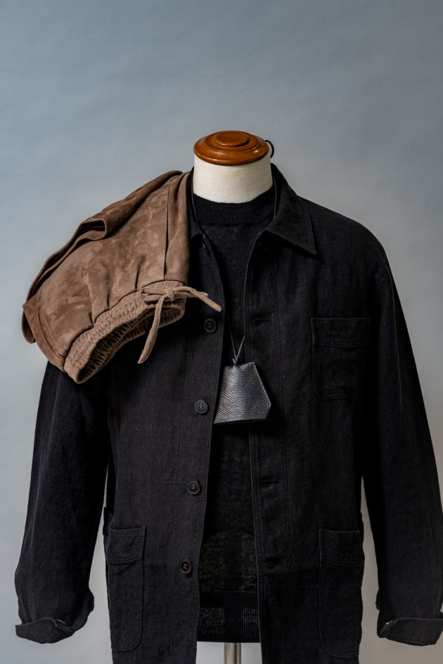 レザーはナチュラルなシボを活かした素上げに近い仕上げで、顔料を使わないことで非常に自然な表情と柔らかさを実現しています。さらに、革を0.8ミリまで薄く漉き、縫い目を極力減らすことで軽量かつしなやかなつくりに。ブランド史上もっとも軽さと繊細さを追求したバッグです。